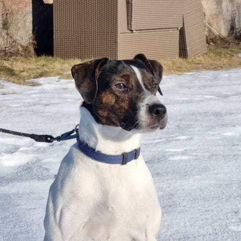 På grund av ändrade familjeförhållanden så behöver vi sälja vår hund som är en dansk-svensk gårdshund på ca 1,5 år och är en kastrerad hane.