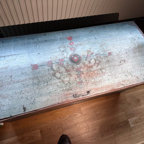 Träbrudkista/förvaringskista i massivt trä med snidad dekor på framsidan. Kistan står på runda träfötter och har metallbeslag på hörn och sidor. Invändigt finns ett större fack samt en löstagbar insats med flera mindre fack för sortering av mindre saker. Passar som förvaringsmöbel i exempelvis sovrum eller vardagsrum, eller som traditionell brudkista.