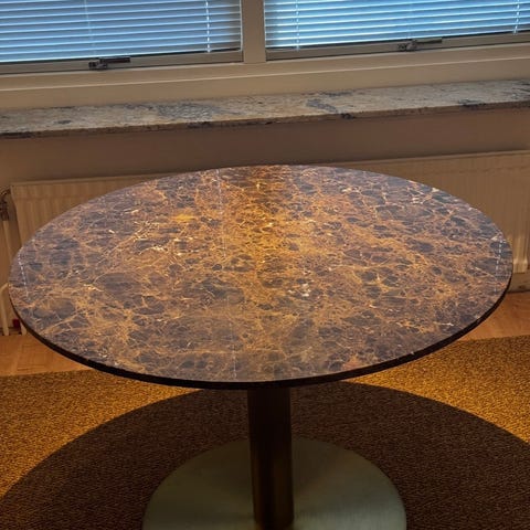 Exklusivt soffbord i marmor med fot i mässing inköpt på Mio, Höjd: 45 cm & diameter: 106 cm