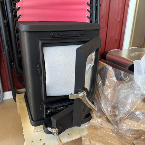 Caminetti Montegrappa vedkamin med svart stålkonstruktion och glasfront. Kaminen har eldstad klädd i eldfast material och asklåda längst ned. Avsedd för uppvärmning med ved i bostadsutrymmen enligt tillverkarens specifikationer. Typ- och serienummer framgår av märkplåten på baksidan för den som vill kontrollera tekniska data som effekt och anslutningskrav.