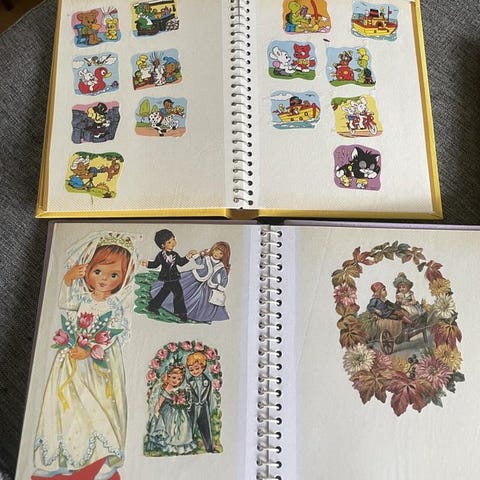 Flera pärmar/album i olika färger ingår och passar grund för fortsatt samlande. 8 album och 1 låda ingår.