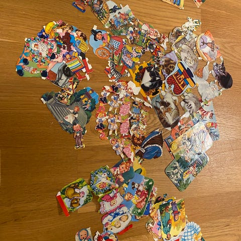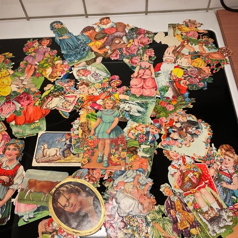 Bokmärkesalbum med samling av bokmärken med blandade motiv från 1980-1990 talet. . I albumen finns bland annat änglar, barn, djur, blommor och andra dekorativa illustrationer. Över 50 stycken hela kartor finns i samlingen.