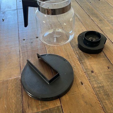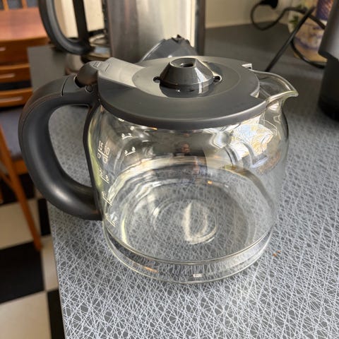Wilfa kaffekanna med tillhörande filtertratt. Kannan är i glas med svart handtag och lock. Filtertratten är svart med avtagbar insats. Passar som reservdel eller extra kanna till kompatibel Wilfa kaffebryggare.