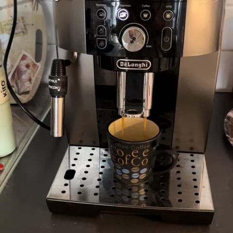 De'Longhi espressomaskin med mjölkbehållare rostfritt stål