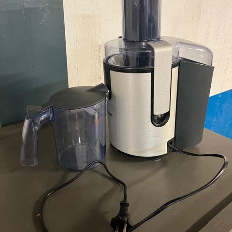 Säljer en pålitlig och kraftfull råsaftscentrifug (modell HR1861) i snygg design av borstad aluminium. Perfekt för dig som vill göra egen färsk juice på ett kick!