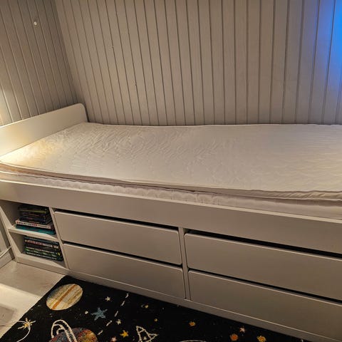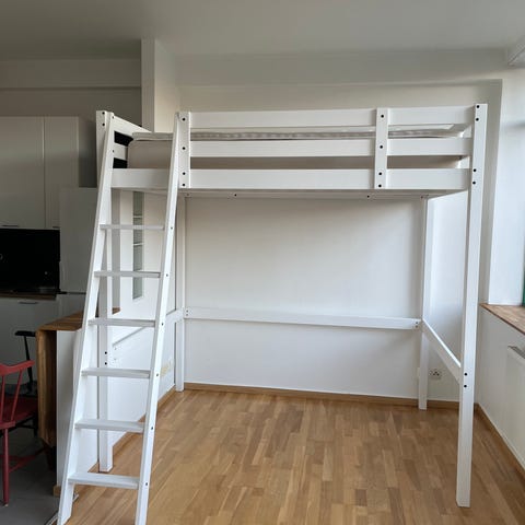Madrassen och bäddmadrassen säljs som ett separat paket men fungerar ihop med IKEA:s loftsäng Storå som bortskänkes via den här annonsen: https://www.blocket.se/recommerce/forsale/item/21218209
