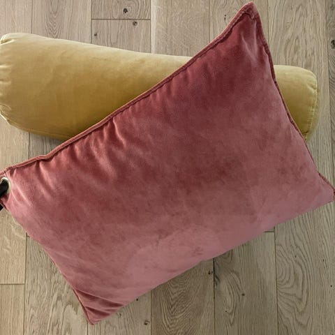Rosa kudde med knapp, 150kr, finns i Åhus, skickas ej