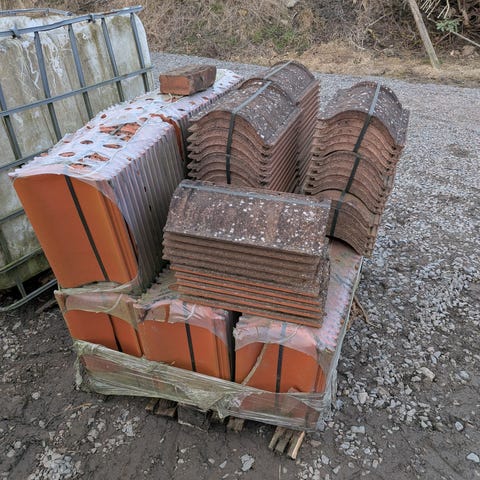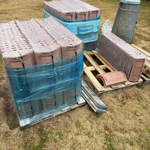 Benders takpannor på pall. Produkten är förpackad i originalplast från tillverkaren. Lämplig för takläggning eller komplettering av befintligt tak med Benders pannor. För mer exakt modell, kulör och antal pannor hänvisas till märkning på emballaget eller information från säljaren.