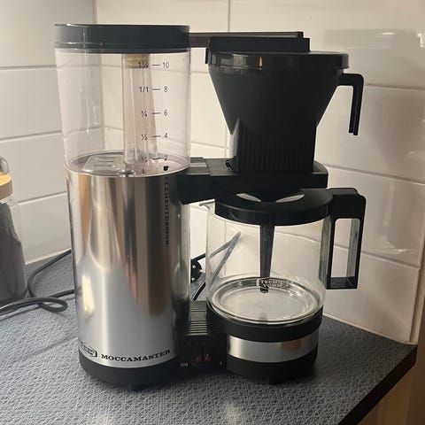 Hel och fungerar som den ska! Det är en fantastisk bryggare... Köpte ny glaskanna för bara ett litet tag sedan, så den är som ny. Följer även med ett originalmått som syns på bilden.
