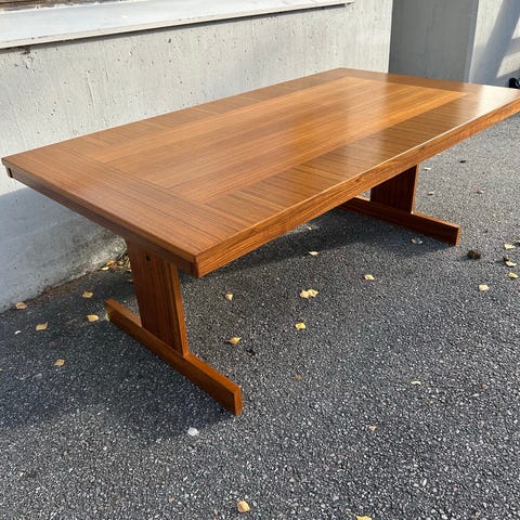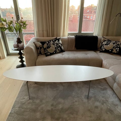 Karl Andersson & Söners Trippo bord i valnöt med metallben. Bra skick men med lite repor i bordsskivan. Bordsskivan är av trä och kan slipas till nyskick. Diameter 85 cm och höjd 53 cm.