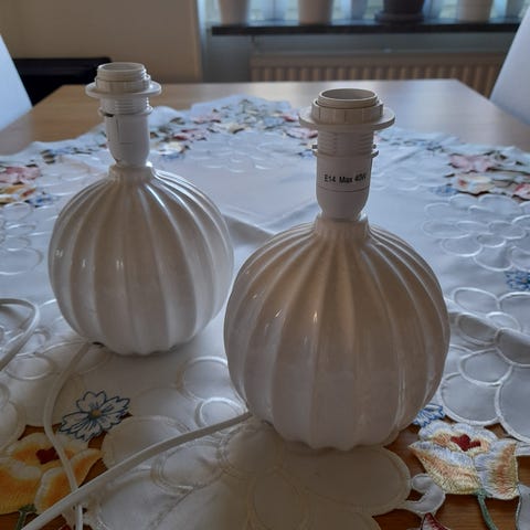 Ikea bordslampor i vit keramik. Två likadana lampfötter med sladd och strömbrytare. Passar standard lampsockel för utbytbar ljuskälla. Lämpliga som sänglampor, fönsterlampor eller som extra belysning i olika rum.