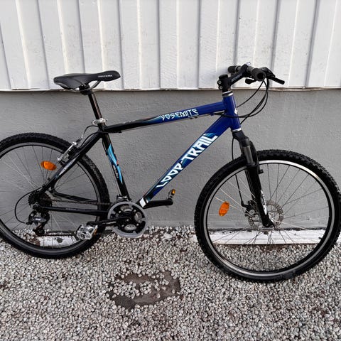 Mountainbike Yosemite X-trail. 26 tum. 21 växlar (3x7). Höstservad på MIOO Cycling AB, Lidingö Sep 2025 inklusive byte av kedja och kasett (kvitto och serviceprotokoll finns). Har passat en 11-12 årig kille som nu vuxit ur den.