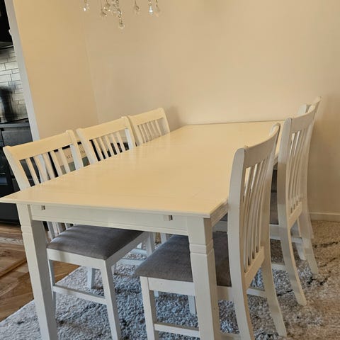Matbord med 4 stolar i trä/vitt.