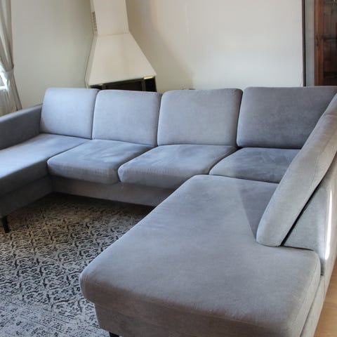 Soffan är använd men i gott skick. Katt finns i hemmet, inga klösmärken.