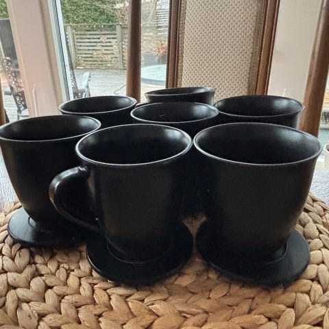 Fem koppar ifrån Melitta svarta med vit insida espresso koppar med en höjd på ca 6,5 cm.