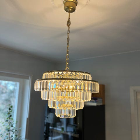 En mycket fin äkta kristall lampa, 35 cm , med mässings detaljer.