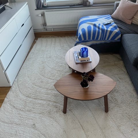 100% ull – varm, mjuk och naturligt slitstark Handvävd struktur som ger ett lugnt och lyxigt uttryck Nypris hos Beliani: ca 6 000kr Inga fläckar, märken eller skador