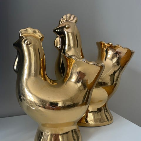 Två klassiska Barcelos-tuppar från Portugal – Lyckoamuletter