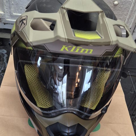 Små skavmärken, se bilder. Vindskydd för hakan är delad, se bild.