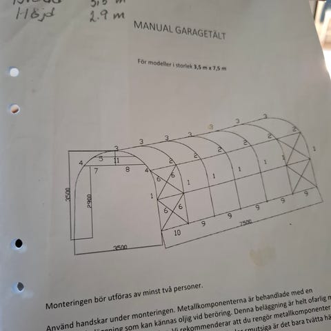 Helt nytt garagetält, ouppackat. 5x10 meter, sidohöjd 4 meter, port 4,1x3,5m. Inklusive förankringspaket för jord. Lasthjälp finns, kan även levereras inom ett par timmars körning mot reseersättning.