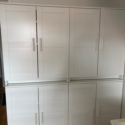 Fint skåp ljust trä med glasdörrar höjd2,13 bredd 47cm