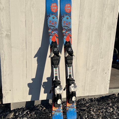 Slalomskidor 127 cm, passar barn 7-10 år. Lite slitna men funkar jättebra