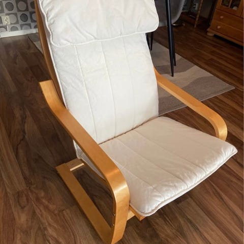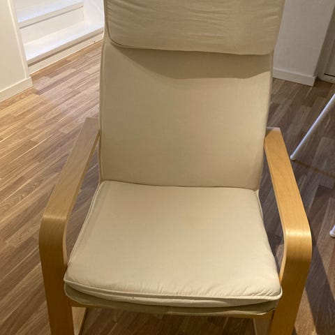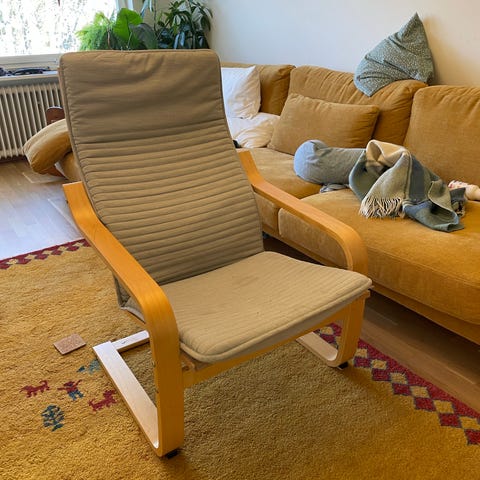 En klassisk IKEA POÄNG fåtölj i björk