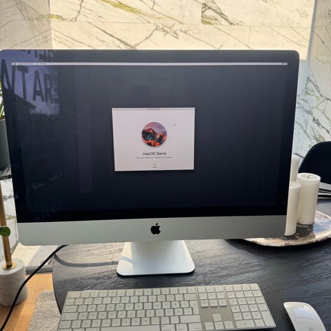 Apple iMac stationär dator med 21-tums skärm. Datorn är en allt-i-ett-modell där skärm och dator är integrerade i samma enhet. Lämplig för allmän datoranvändning som webbsurf, kontorsarbete och mediakonsumtion. Ingår tillhörande tangentbord och mus. Inköpt 2013. 8GB minne. 2,7 GHz.
