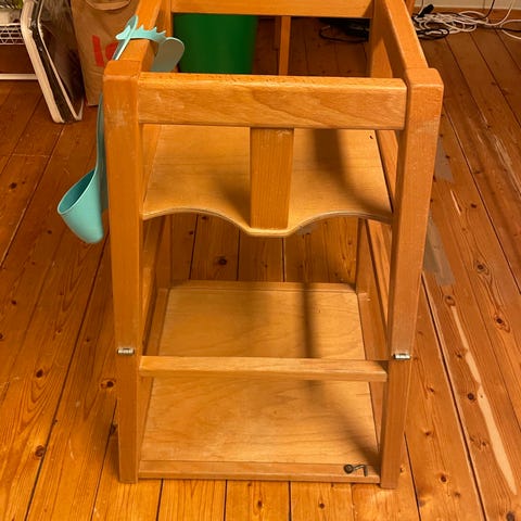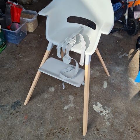 Stokke Tripp Trapp matstol i natur trä. Justerbar sittyta och fotstöd som kan anpassas efter barnets längd.