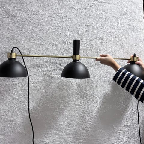 IKEA taklampa i metall med skärm i mässingsfärgad. Lampan är av pendelmodell med svart sladd och takfäste. Passar för montering i tak ovanför till exempel matbord, köksö eller arbetsyta. Ljuskälla ingår inte.