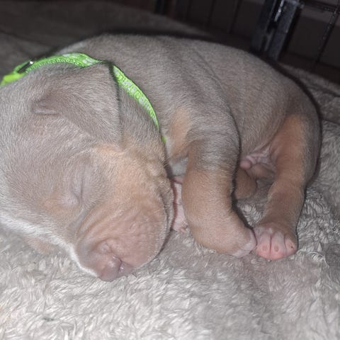 Hon är väldigt lättlärd och tycker att träning är roligt, särskilt när det finns lite godis med i bilden. Rumsrenheten är nästan helt på plats och hon klarar redan att vara hemma själv i ungefär en timme utan problem. Älskar att sova i sängen- gärna på kudden under täcket 😂