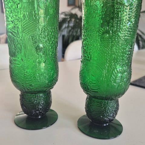 8 stycken ölglas, Hertig Karl glas från Reijmyre glasbruk, en klassisk svensk serie med en karakteristisk grön färg och nubbad yta.