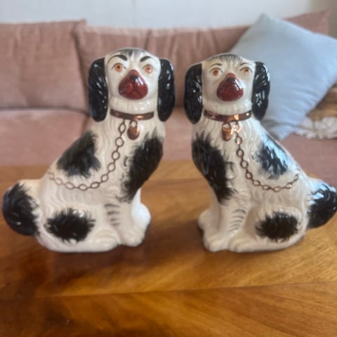 En golvfigurin i keramik föreställer en hund märken som italienska Capo di Monte .