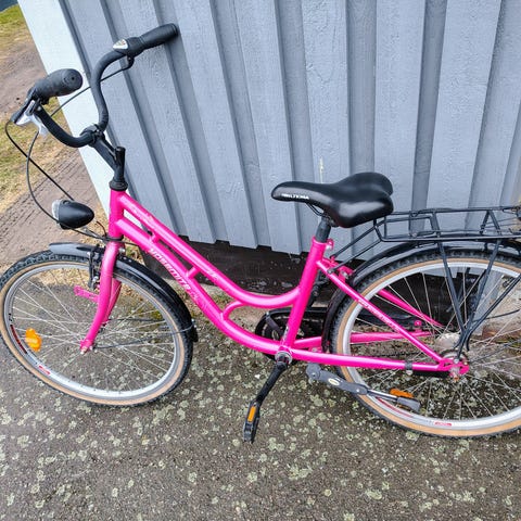 Apollo barncykel med 20" hjul i rosa färg. Cykeln har lågt insteg, fotbroms bak och handbroms fram. Utrustad med navväxel Shimano Nexus, kedjeskydd, stänkskärmar, pakethållare, ringklocka, avtagbar korg fram samt reflexer på hjulen och pedaler. Passar barn som behöver en stabil vardagscykel för cykling till skola och fritidsaktiviteter.