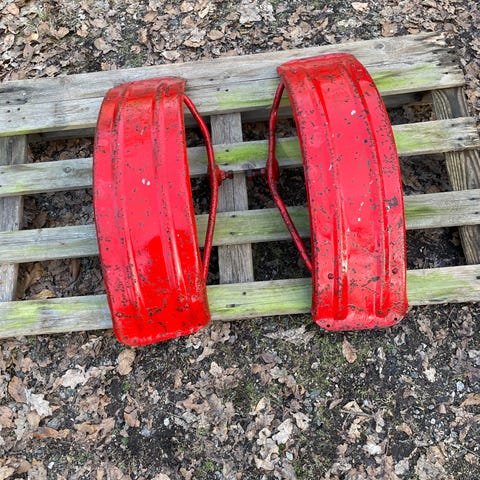 Stabila uppkörningsramper med hjulstopp. Av lackerat stål. Säljs i par (2 stycken).