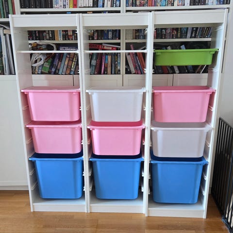 Tillbehör: Säljes komplett med de plastlådor som syns på bilden (vita i olika storlekar samt en rosa).