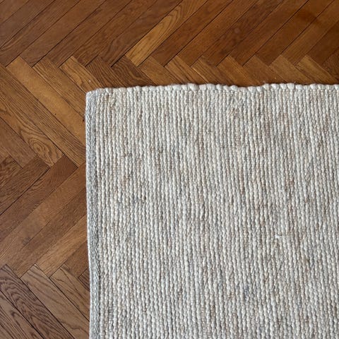 All rugs are handmade solely of recycled PET yarn - recycled plastic bottles spun into a hair thin polyester thread. This is a 100% sustainable material, super soft and absolutely similar in look and feel to wool. No synthetic coating is used. Handmade and recycled products will always have minor differences when we compare them as they are not made by machines nor from virgin material. Smaller variations in colour, shading, texture and shape are inherent in a handmade and recycled item. And remember, this is really what makes your rug truly one-of-a-kind.