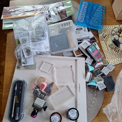 Två kort-mattor, välanvända men fungerar fortfarande, material för att göra kort och pappersdekorationer eller scrapboocking