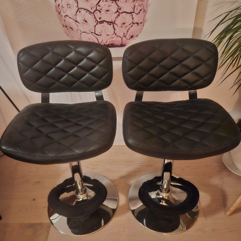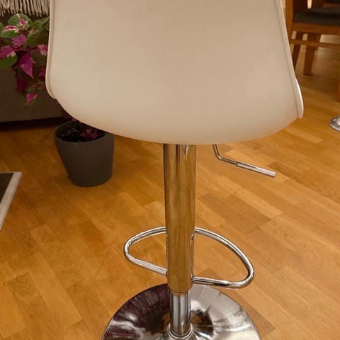 Säljer två vita stolar som är höjd och sänkbara. Dem har används av mina barn som sminkstolar. Så det finns lite "slitage" på stolarna, men i övrigt helt okej.