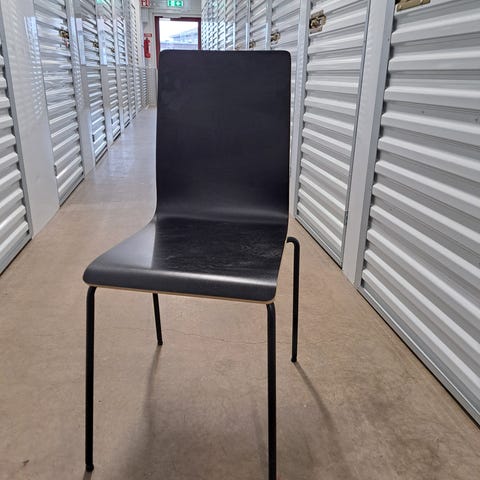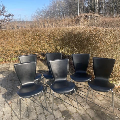 4st stolar i svart konstläder på kromade ben. Ryggarna A är slitna, se bilder.