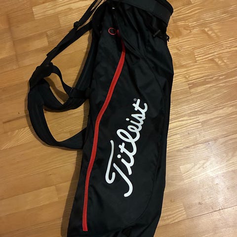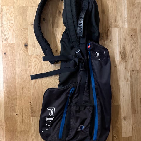 Ping Moonlite golfbag i svart färg. Lättviktig bärbag med axelrem för transport av golfklubbor. Flera fickor för förvaring av bollar, peggar och tillbehör. Passar för användning på golfbanan som enkel och smidig bärbag. Legat på hyllan sedan ja vann den på en tävling