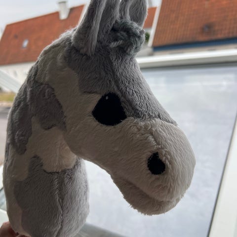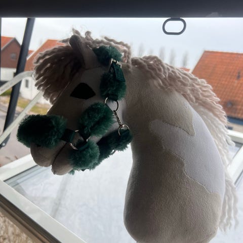 Väldigt fin vit käpphäst med mjuk päls och man.