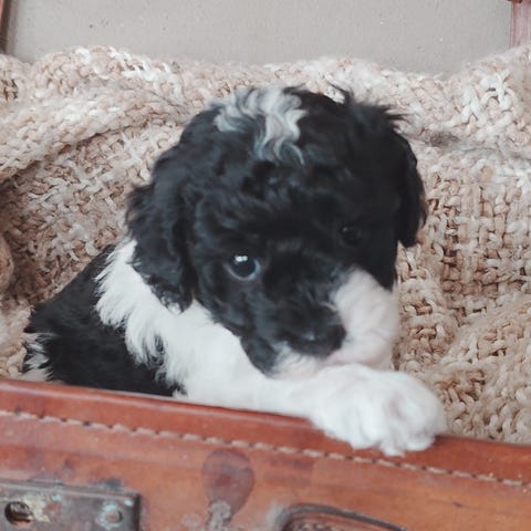 De är en blandning av cavalier/pudel (mamma) och cavalier/fralla (pappa).