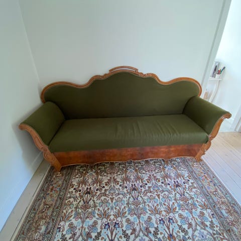 En äldre antiksoffa säljes p. g. a. platsbrist. Och en äldre massagefåtölj skänkes bort.