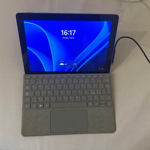 Modell MK2K3KN/A, A2602 (2021). Version 26.3.1 är installerad. Tangentbord/fodral medföljer. Fungerar felfritt. Är återställd.