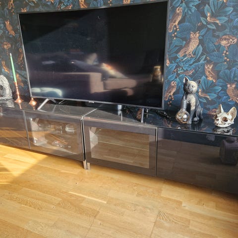 Tv bänk 180 cm bred , 45 cm djup , höjd 38 cm.
