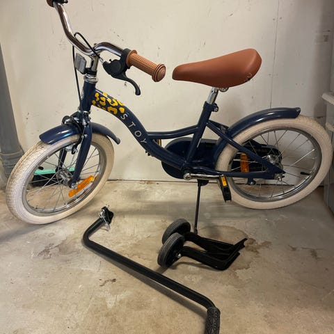 Barncykel med 16" hjul i rosa färg. Cykeln har pakethållare bak, kedjeskydd och stänkskärmar. Utrustad med upprätt styre och sadel anpassad för barn. Passar för barn som behöver en cykel i 16-tumsstorlek för vardagscykling och lek.