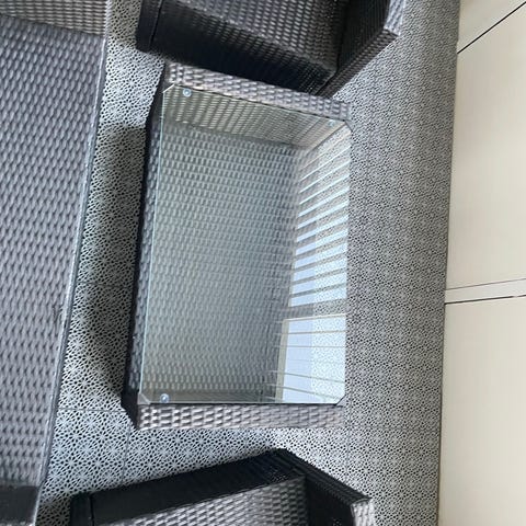 Fint skick i plasten/rottingen och stommen, kuddarna är dock solblekta.