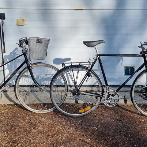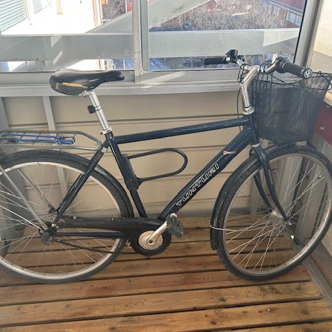 Äldre ”gubbcykel” Svalan Promenad. Punktering på båda däcken. Ena hjulet är vint.