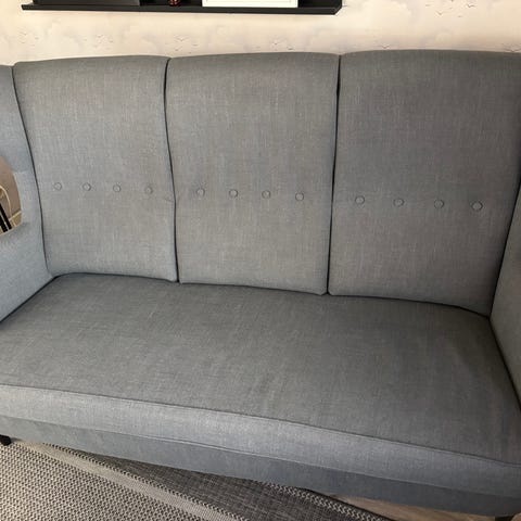 IKEA STRANDMON soffa 3-sits i grått tyg.